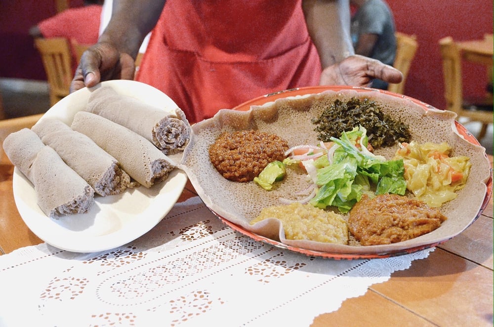 Food is so good, we ordered the vegetarian and meat combo. Do not try to use all the rolled injera, after you make a dent use the injera under the food, it absorbs all the juices and it is phenomenal! We're coming back for breakfast!