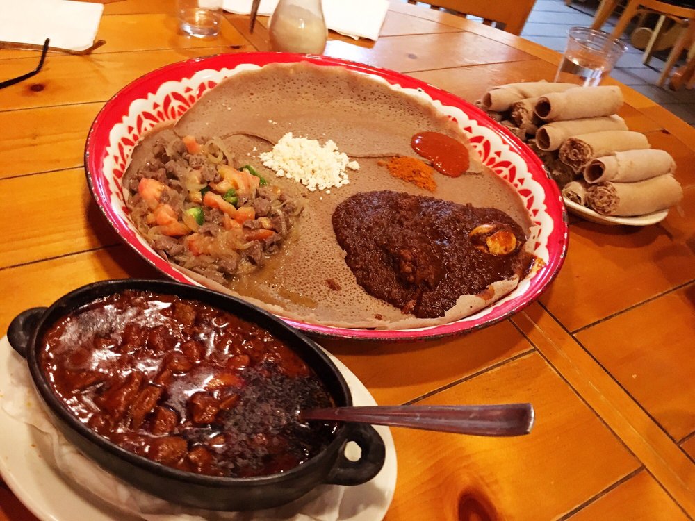 A fun experience and the food is quite good. Be warned it is behind a market store front and you have to walk through the market. We almost left thinking it was just a market with takeout but they do have table service in a little restaurant. 5 stars for food and service 4 for the ambience and looks of the place. I am not an expert but I think this is a very authentic place. The market sells a lot of unique spices and food items. They bake their own Injira, make their own Tej (honey wine) and they are an importer and distribute for Ethiopian beer.